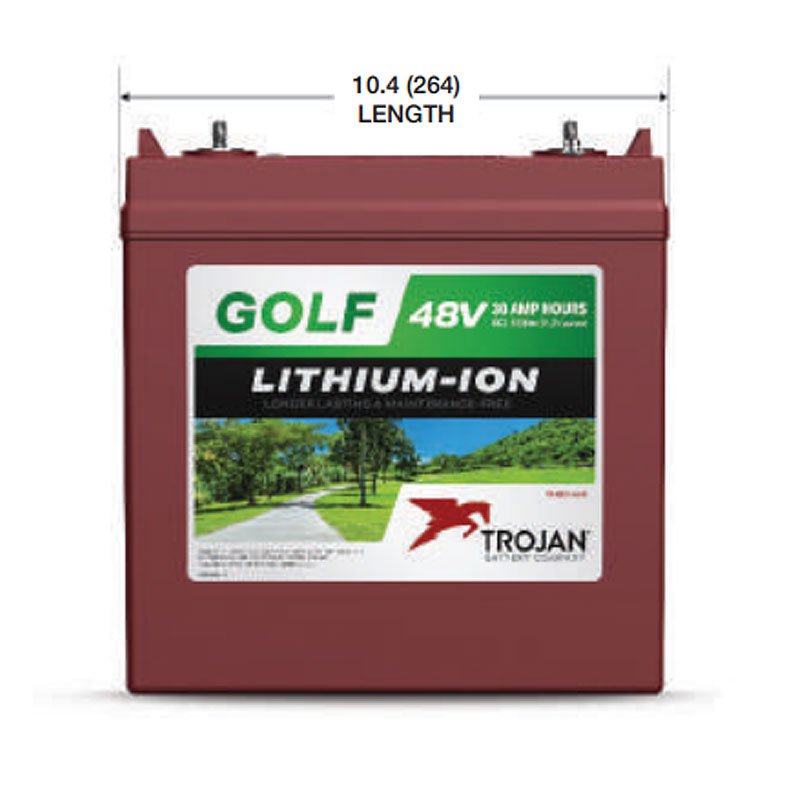 The new Trojan TR GC2-48-G 30Ah LiFePO4 48V Deep-Cycle golf car Lithium Battery delivers MORE distance, faster charging, off-road durability in a super lightweight maintenance free package.