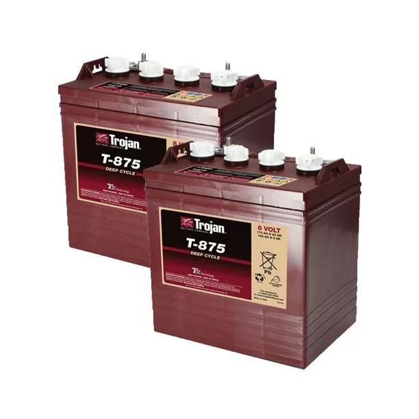Trojan T-875 LPT MV 8V 170Ah Deep Cycle Flooded Lead Acid Battery For Golf Carts, Solar Applications and more. Trojan Battery Company is the world leader in deep cycle battery technology. Since 1925, Trojan has been a pioneer in the development of superior deep cycle batteries. Decades of experience, ongoing research and dedication go into every deep cycle battery we manufacture. The bottom-line? You can depend on Trojan to deliver reliable, long lasting, continuous power and exceptional value. That’s the Trojan advantage, and it’s yours in every deep cycle battery with the distinctive maroon case. Flooded lead-acid batteries have the longest track record in solar electric use and are still used in the majority of stand-alone alternative energy systems. They have the longest life and the least cost per amp-hour of any of the choices. However the other side of the coin is, in order to enjoy these advantages, they require regular maintenance in the form of watering, equalizing charges and keeping the top and terminals clean. 8 volt golf cart battery